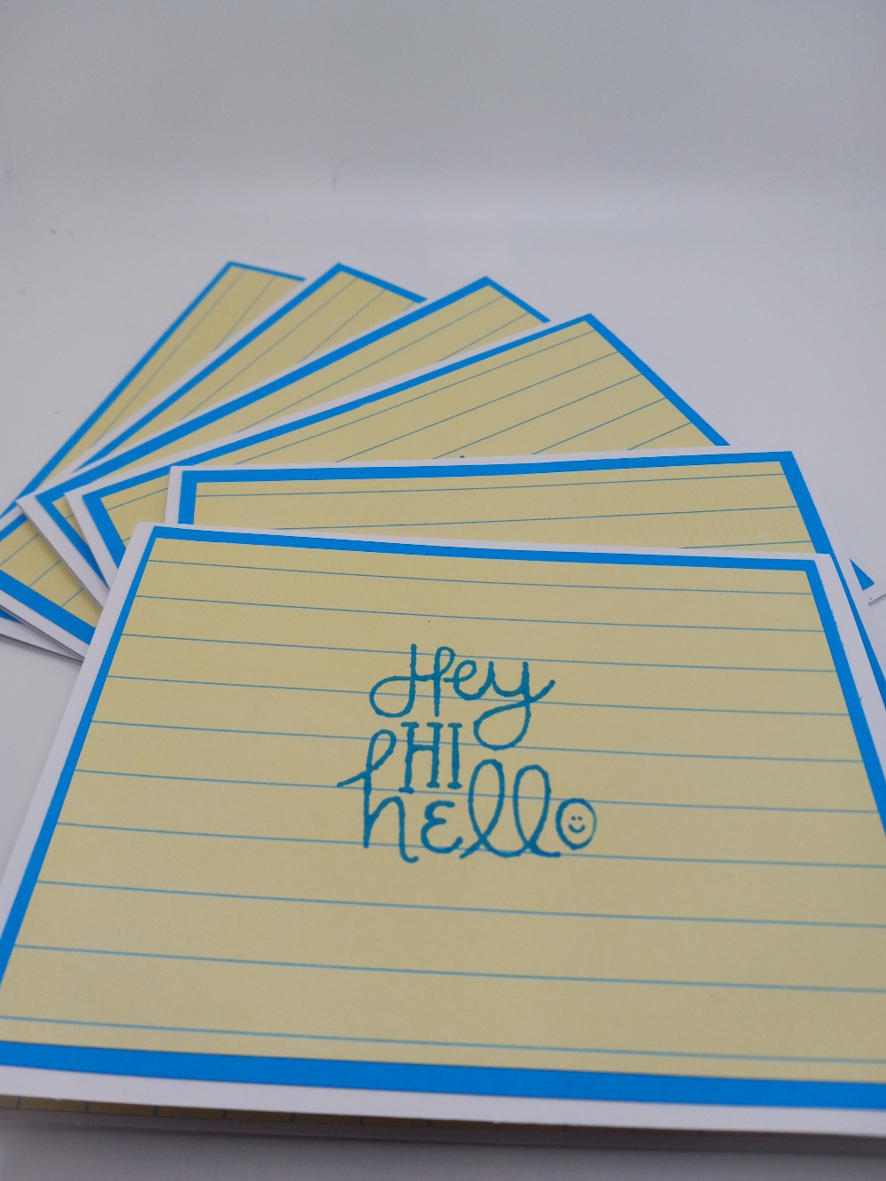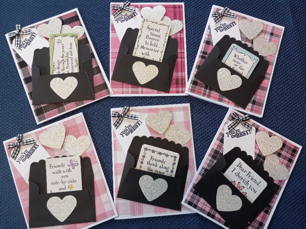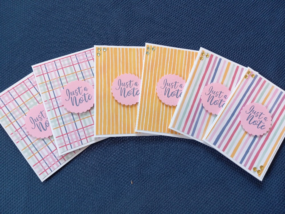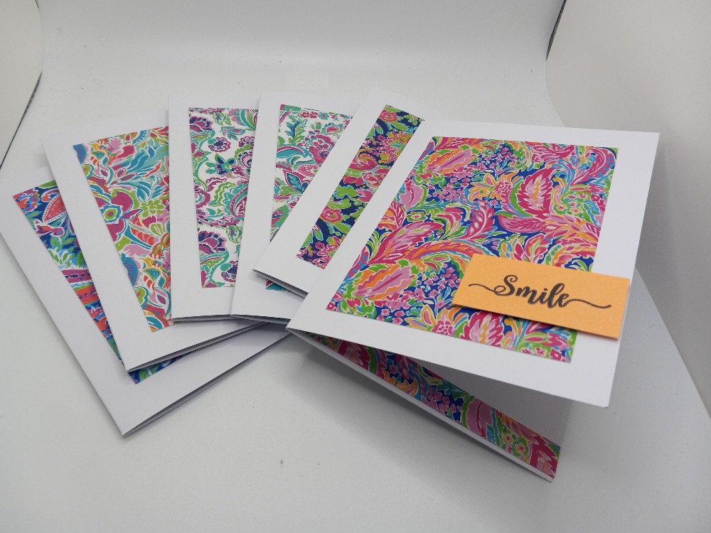 6 notecards/envelopes, blank inside. Tied with a bow, all ready for gift giving!