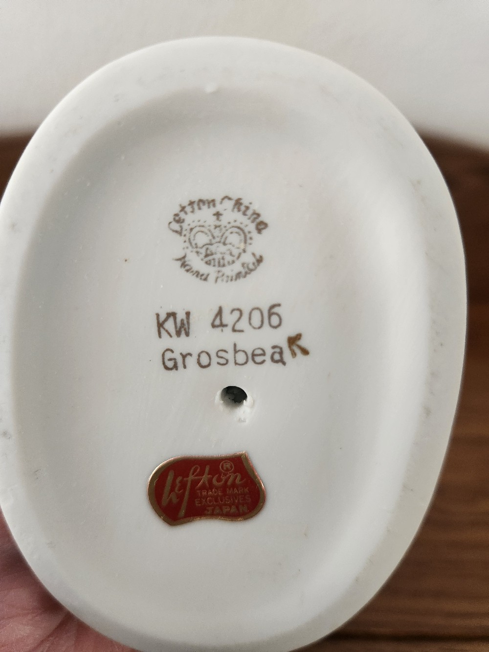 Vintage Lefton China KW4206 "Grosbeak" collectible bird figurine. Hand painted and made in Japan. Excellent condition. 5 1/8" tall
