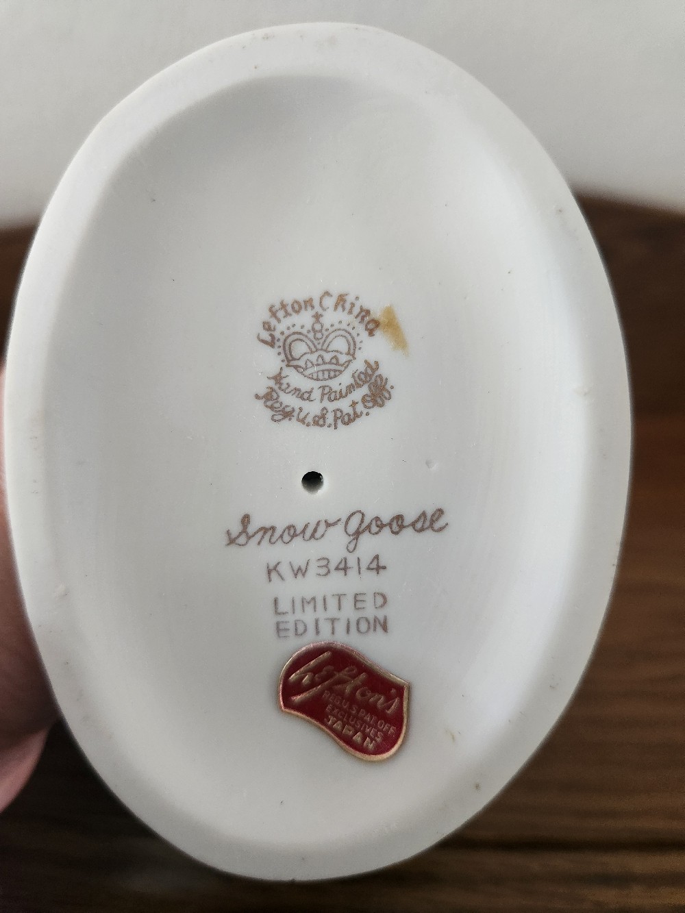 Vintage Lefton China KW3414 "Snow Goose" collectible bird figurine. Limited Edition. Hand painted and made in Japan. Excellent condition. 5.75" tall.